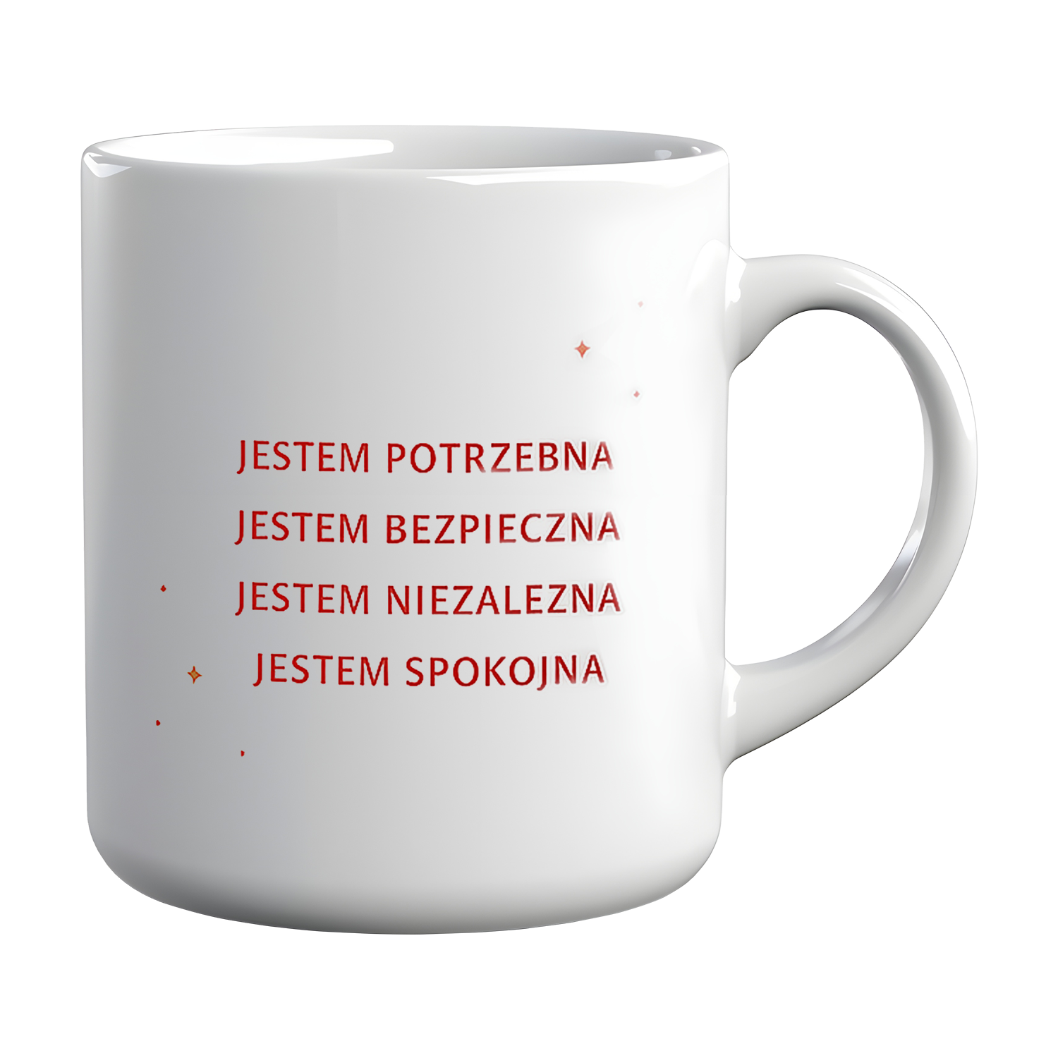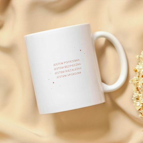 Kubek „Jestem Potrzebna” – biały ceramiczny kubek 330 ml z afirmacjami