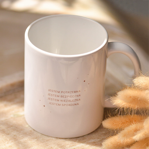 Ten biały kubek o pojemności 330 ml został stworzony z myślą o osobach, które chcą wzmacniać swoje poczucie wartości i codziennie otaczać się pozytywną energią. Wykonany z ceramiki klasy premium, jest trwały, elegancki i wygodny w użytkowaniu.
